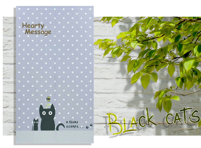 のれん おしゃれ 黒猫 ドット柄 水玉キャット 85×150cm 【メール便送料無料】
