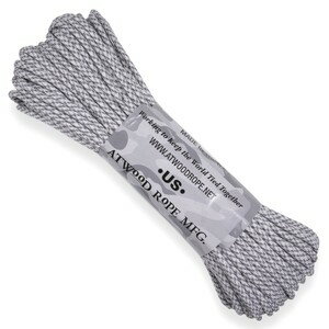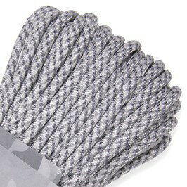 アトウッドロープ タイプ3 パラシュートコード冬の極寒地に溶け込むイメージのアークティックカモ柄パラコードATWOOD ROPE(アトウッドロープ)社製の、白をベースに濃淡2色のグレーを配色した、冬景色に合わせた迷彩パターン、Arctic Camo(アークティック カモ)デザインの550パラコードです。