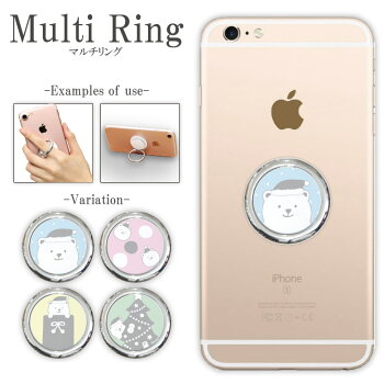 No113 しろくまサンタ マルチリング スマホリング バンカーリング リングスタンド 雑貨 ツリー 靴下 シロクマ ブルー ピンク イエロー グリーン 冬 白くま シロクマ 白熊 サンタクロース レディース クリスマス 可愛い d:ani