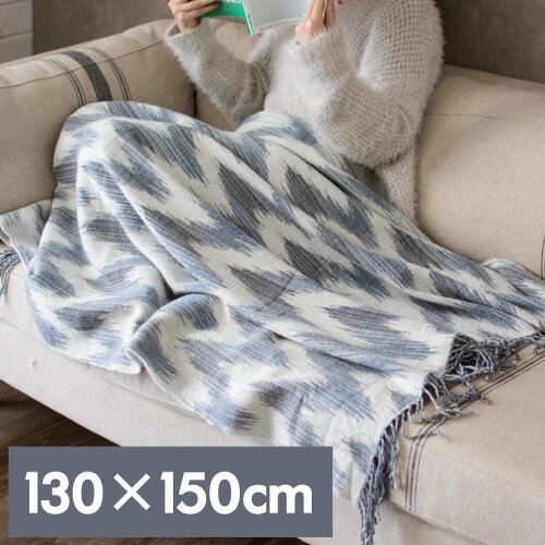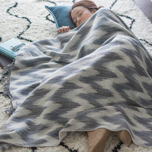 ジャガード織りシェブロン柄ブランケット 130×150cm 大きなギザギザが大胆なシェブロン柄を、ジャガード織りの薄掛けブランケットに。